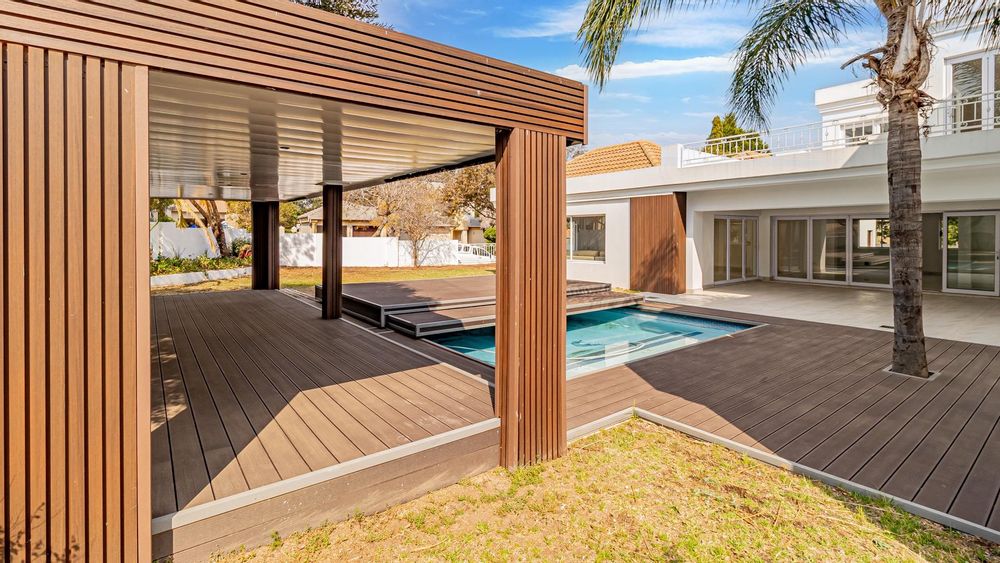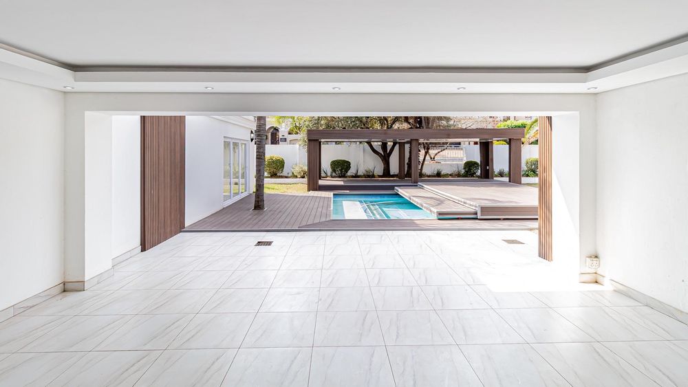 As you enter the property , you are greeted by a welcoming entrance that flows into a generous lounge and entertainment area. This space opens effortlessly onto an expansive covered patio, offering stunning views of the lush garden and sparkling pool. Ingeniously designed with movable deck covers, the pool can be transformed into additional patio space when closed, providing versatility for entertaining.