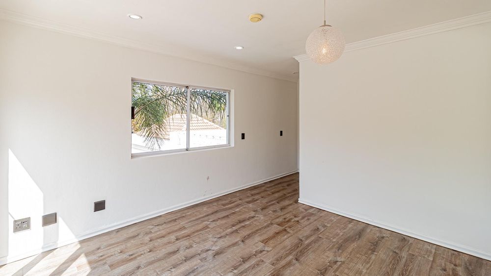 The exterior of the home has been tastefully updated with contemporary wood paneling, while the interiors boast newly retiled floors and an elegantly renovated kitchen. The kitchen features a sleek, modern design complete with a top-of-the-line stove, a large scullery, and a cozy breakfast nook. Conveniently adjoining this area are well-appointed staff quarters.